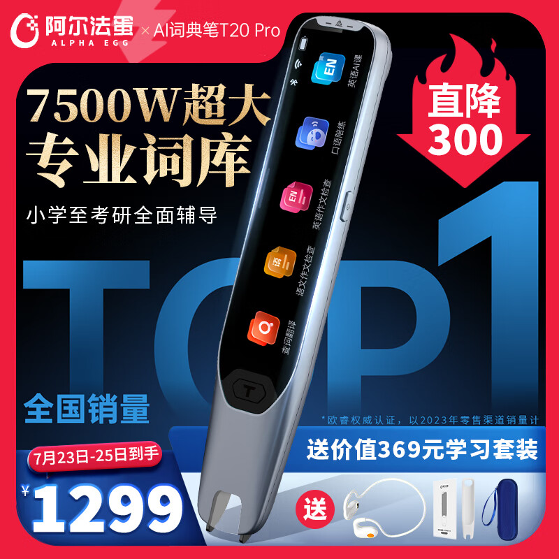 阿尔法蛋AI词典笔T20 Pro 点读笔电子词典全科学习笔神器 英语翻译笔扫描笔单词笔学习机价格:1299.00元!