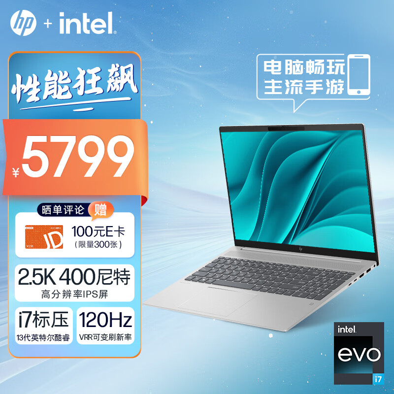 惠普HP 星Book Pro 16英寸大屏轻薄笔记本电脑(13代酷睿i7-13700H 16G 1TB 2.5K 120HzVRR 400尼特 EVO认证)银价格:5799.00元!