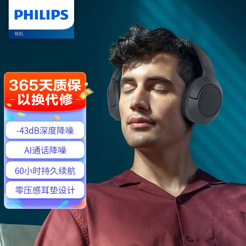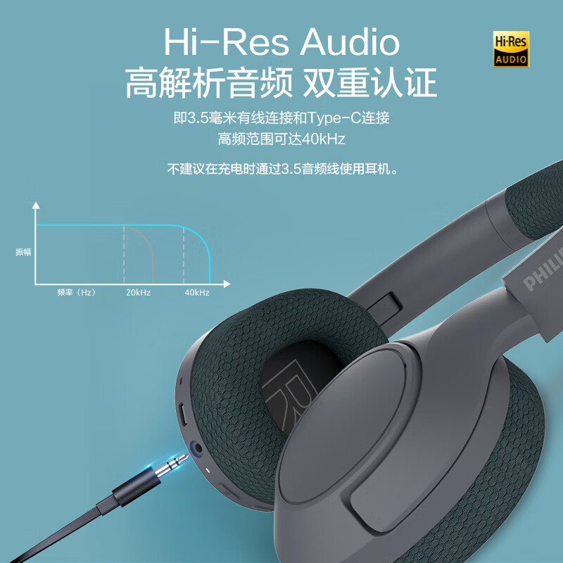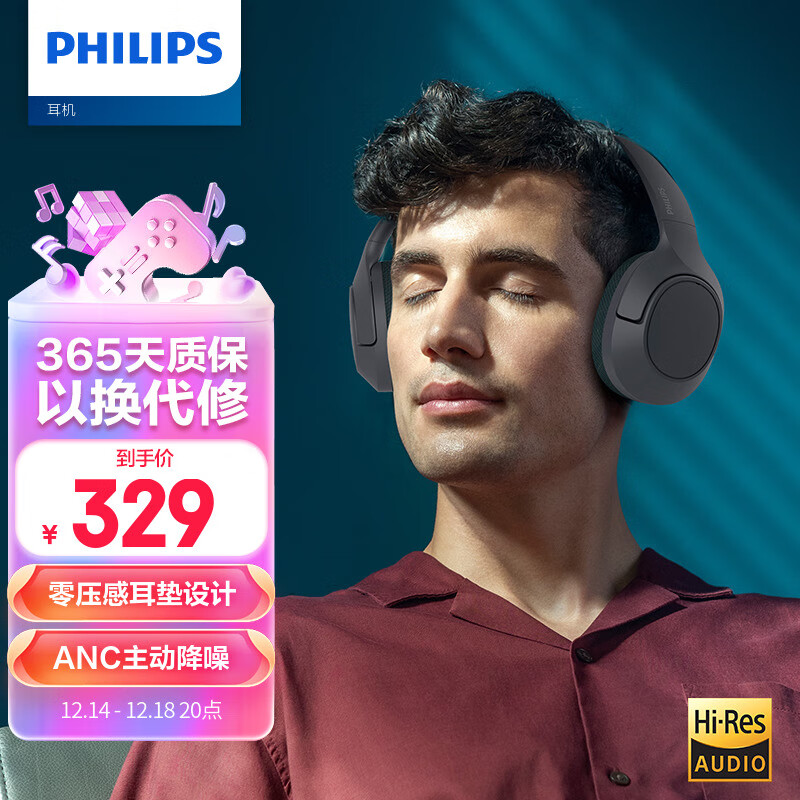 飞利浦(PHILIPS)头戴式耳机无线蓝牙耳机通话降噪耳麦游戏运动耳机 手机电脑笔记本通用TAH7508BK灰黑色价格:329.00元!