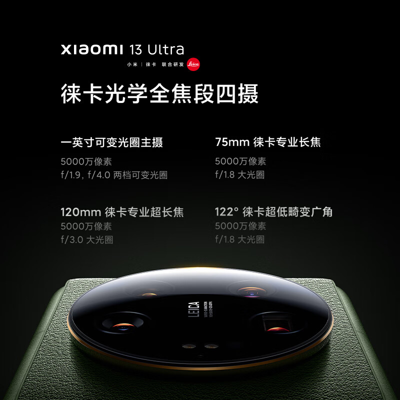 小米(MI)13Ultra 徕卡光学全焦段四摄 第二代骁龙8处理器 2K超色准屏 16+512GB 黑色 AI手机 5G手机价格:4399.00元!