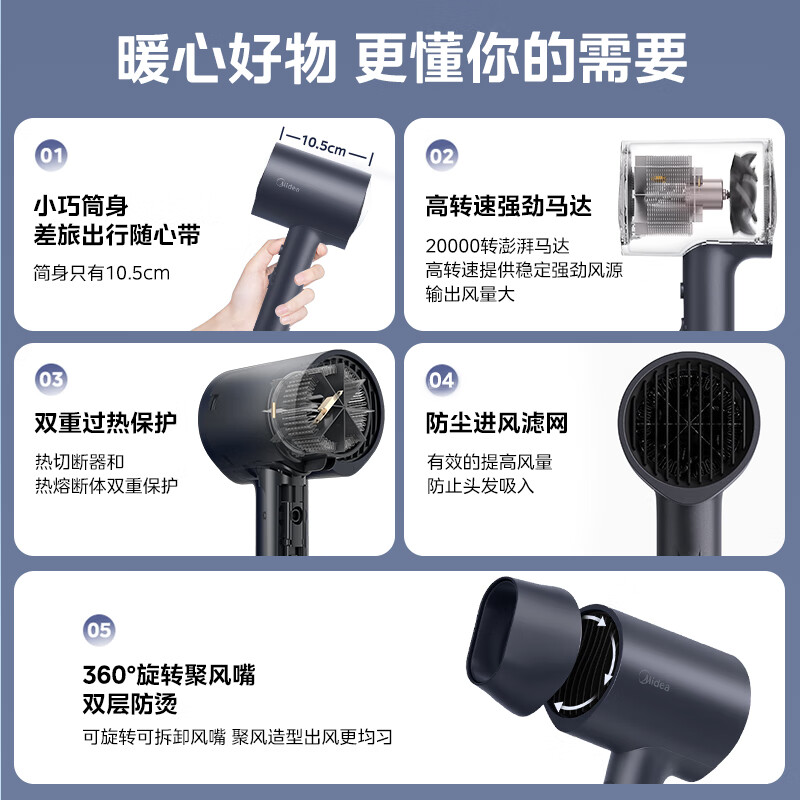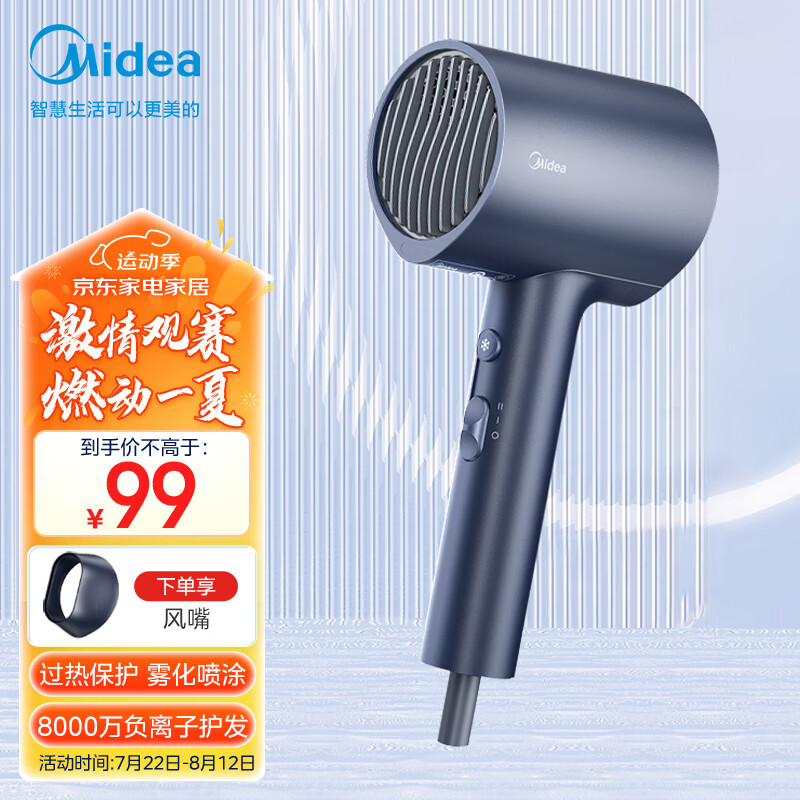 美的(Midea)八千万负离子电吹风 大功率 家用速干柔顺护发吹风筒 电吹风机 节日礼物 MB-AJ0503星夜蓝价格:99.00元!