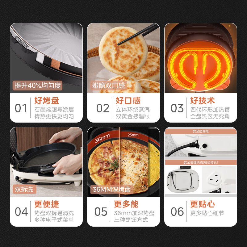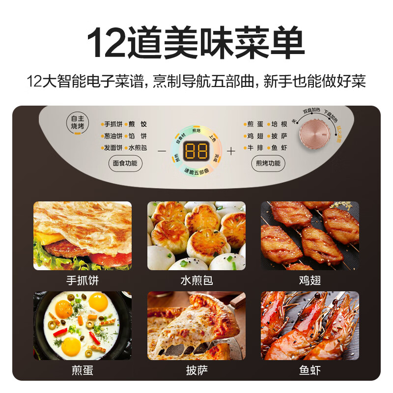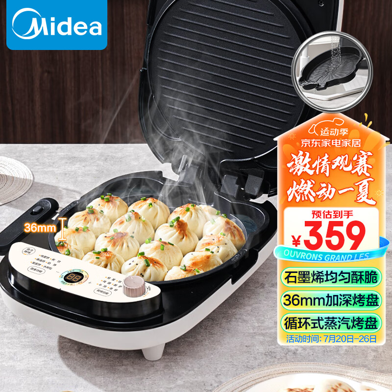 美的(Midea)电饼铛智能家用加大加深上下盘可拆洗双面加热大火力煎饼烙饼锅三明治早餐机多功能煎烤盘JKS3088价格:359.00元!