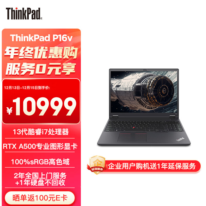 ThinkPadP16v 16英寸高性能设计师工作站13代酷睿i7-13700H 32G 512G RTX A500 高色域 商务办公价格:10999.00元!