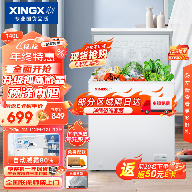 星星(XINGX)140升家用商用减霜净味冰柜 冷藏冷冻转换冷柜 节能顶开冰箱 BD/BC-140QJ价格:799.00元!