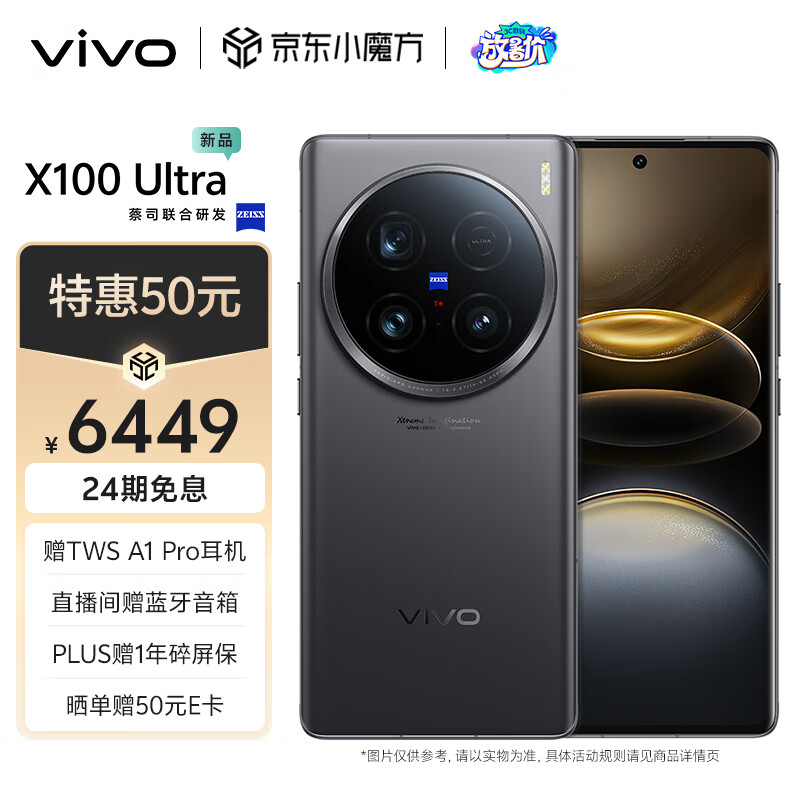 vivo X100 Ultra 12GB+256GB 深空灰 蔡司2亿APO超级长焦 一英寸云台级主摄 蓝图影像 拍照 手机价格:6499.00元!