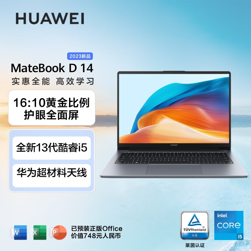 华为(HUAWEI)笔记本电脑MateBook D 14 2023 13代酷睿版 i5 16G IT 轻薄办公本/14英寸护眼屏/手机互联 深空灰价格:4999.00元!