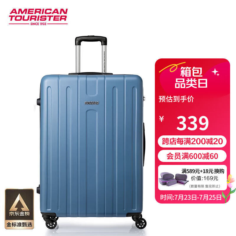 美旅箱包时尚条纹行李箱大学生男女密码箱大容量拉杆箱24英寸TC3雾蓝色价格:439.00元!