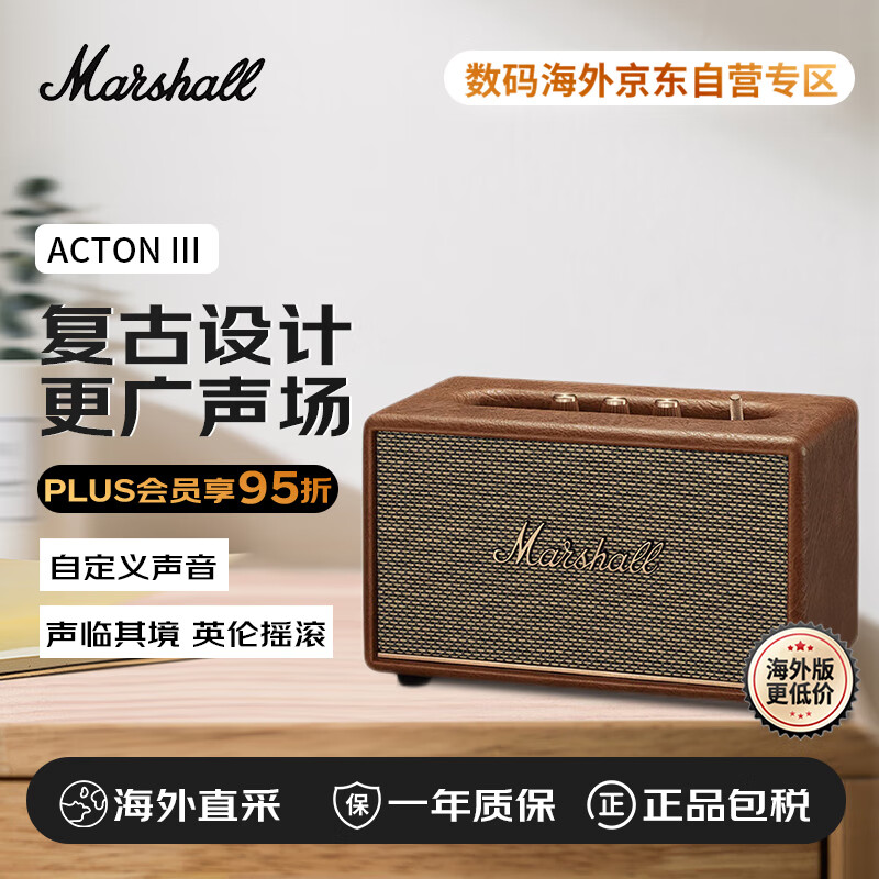 MARSHALL(马歇尔)ACTON III 音箱3代无线蓝牙摇滚家用重低音音响acton3 棕色价格:1999.00元!