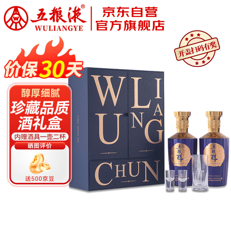 五粮液股份 五粮醇 醇品礼盒 浓香型白酒 50度 500ml*2瓶礼盒装中秋送礼价格:568.00元!