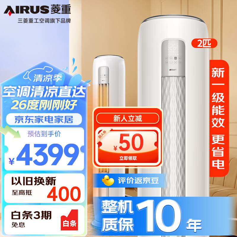 三菱重工空调 菱重空调 大2匹空调 巨省电新1级能效 办公变频家用宿舍卧室空调 冷暖柜机臻选价格:4399.00元!