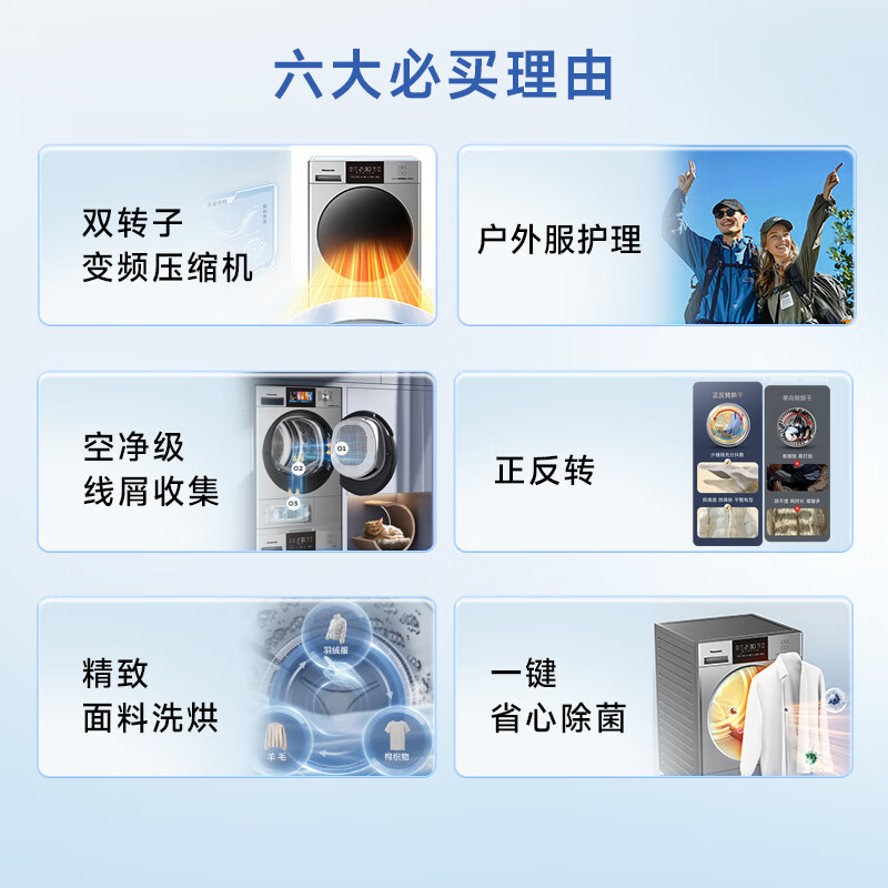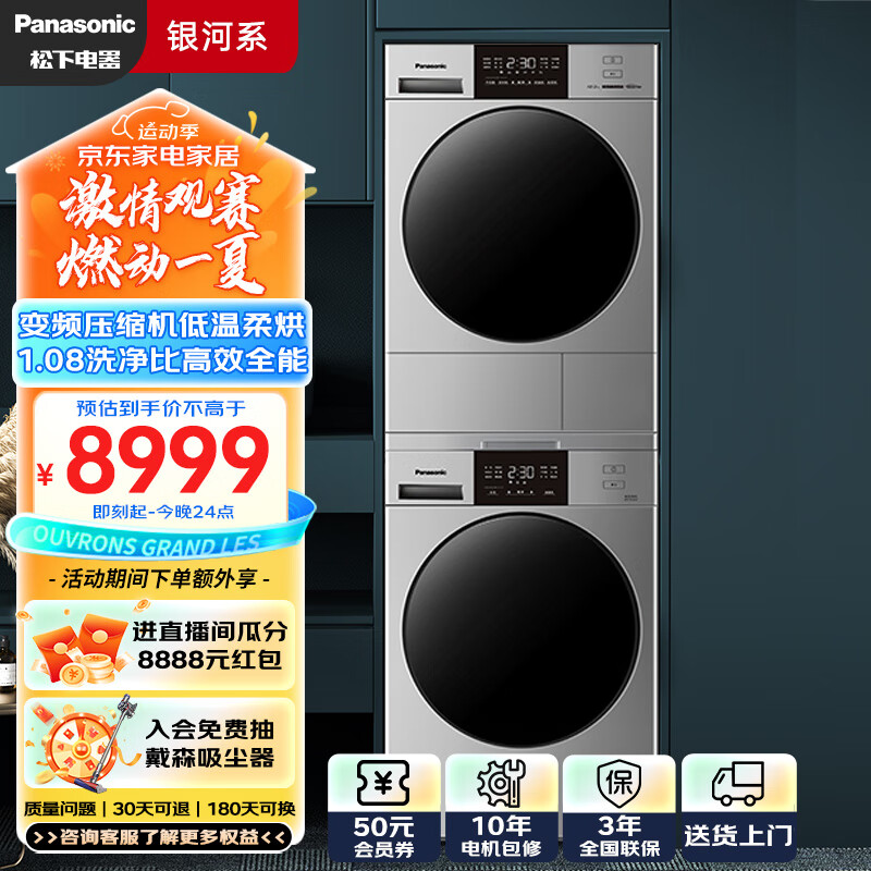 松下(Panasonic)洗烘套装 银河系 10kg滚筒洗衣机+热泵烘干机 变频压缩机 除毛烘正反转 1.08洗净比 82F2+F1CR2价格:8999.00元!
