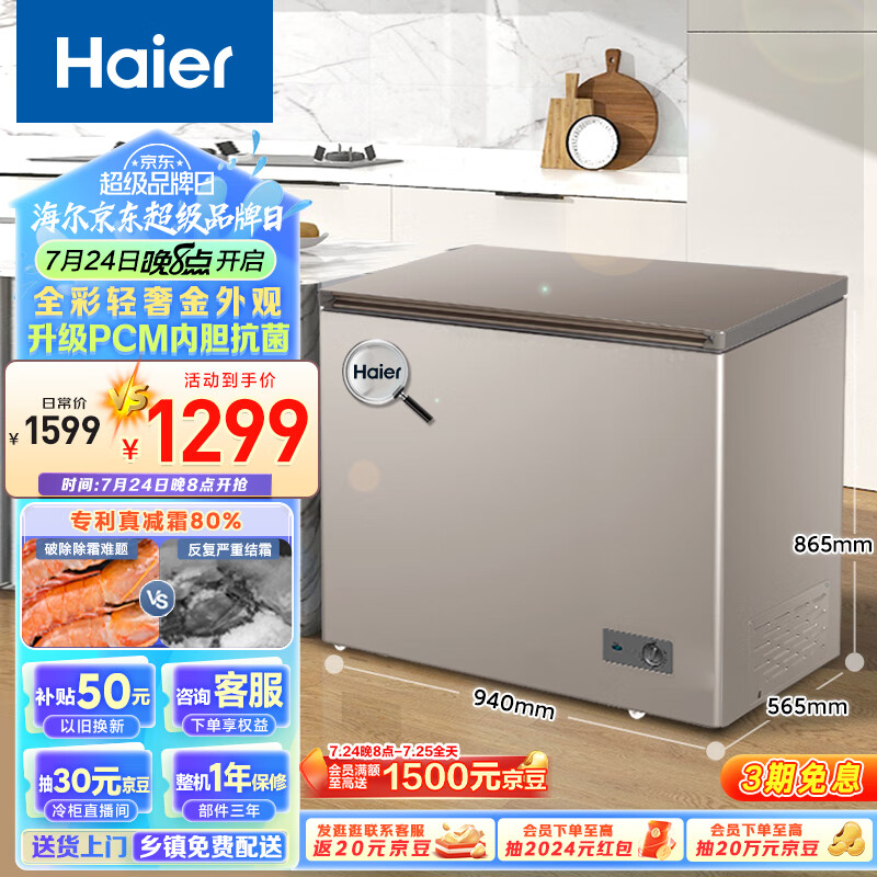 海尔(Haier)227升低霜家用商用冷藏柜冷冻柜小冰柜小型冷柜小冰箱海尔冰柜BC/BD-227GHPCD以旧换新价格:1299.00元!