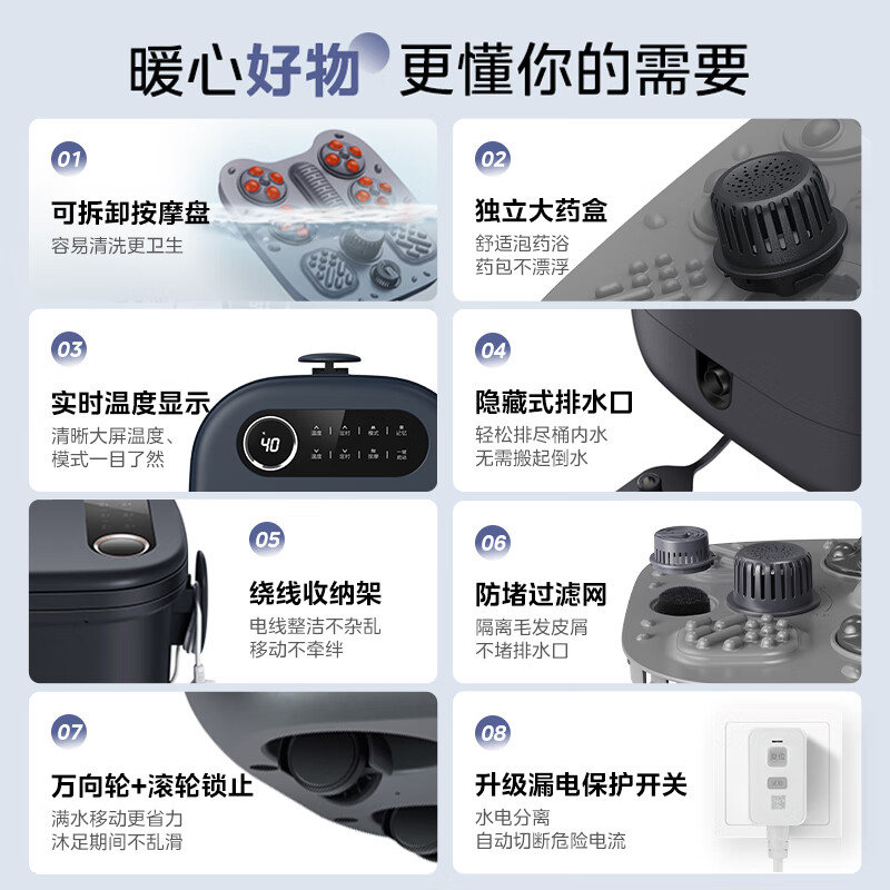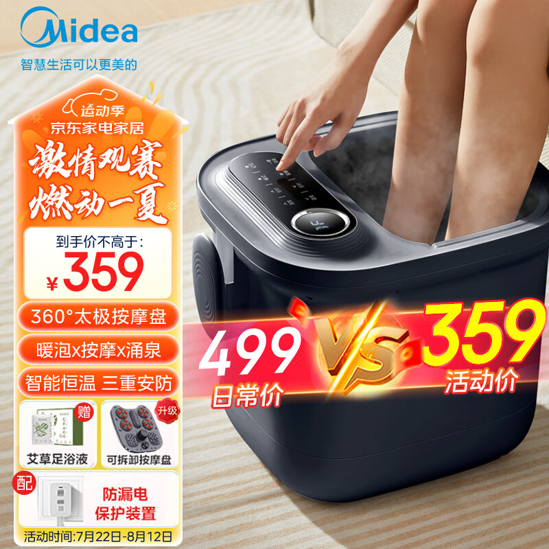 美的(Midea)泡脚桶恒温加热全自动按摩足浴盆洗脚盆仿真按摩泡脚桶过膝可拆洗按摩盘生日礼物送长辈MK-AJ0201价格:399.00元!