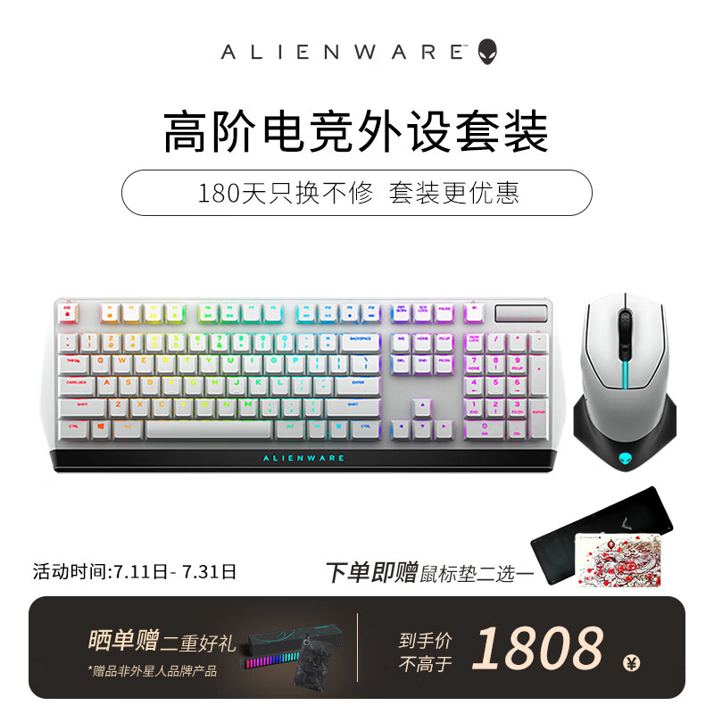 外星人(Alienware)610M+510K 键鼠套装(无线游戏鼠标 有线机械键盘 )RGB高端电竞外设 送男友 送女友 白色价格:1808.00元!