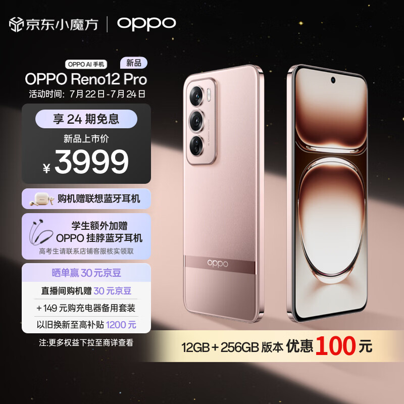 OPPO Reno12 Pro 超美小直屏 安卓Live图 天玑旗舰芯 16GB+512GB 香槟金 新款智能游戏 AI拍照 5G手机价格:3999.00元!