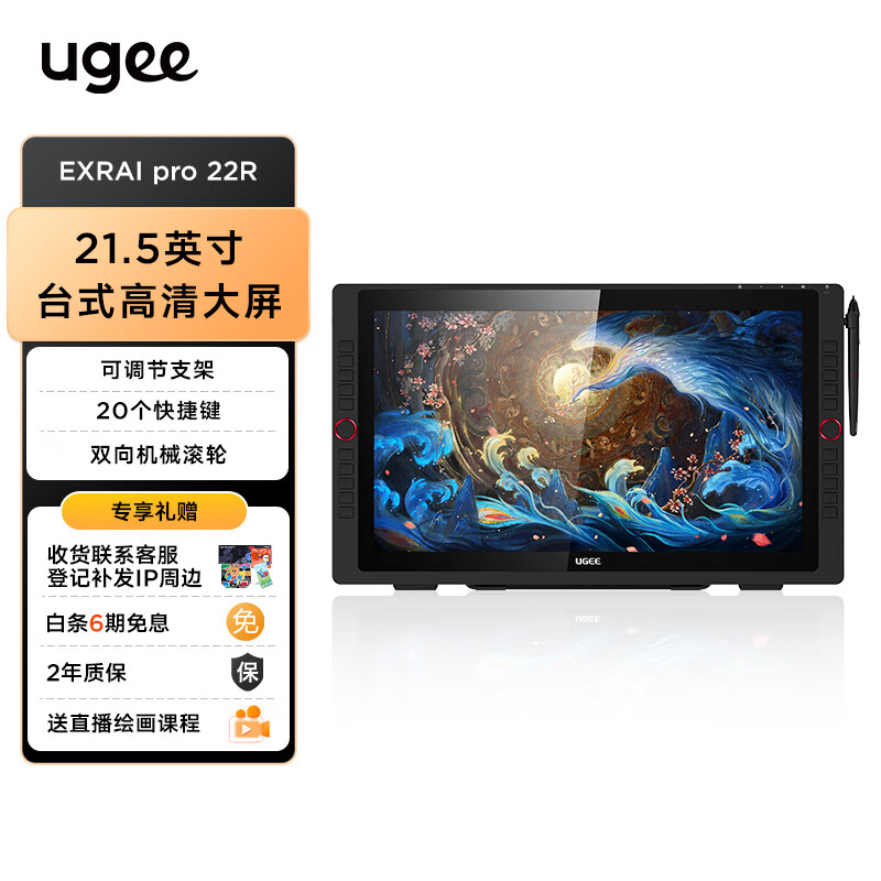 友基(UGEE)数位屏手绘屏绘画屏手写屏数位板手绘板液晶手写板画板连电脑写字板EXRAIPro 22R价格:2279.00元!
