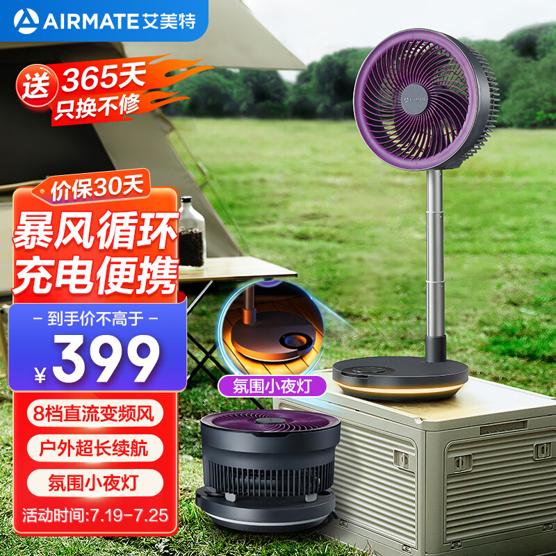 艾美特(AIRMATE)直流变频电风扇空气循环扇伸缩折叠收纳落地扇户外便携式充电小风扇台立式轻音节能柔风风扇 RD88价格:499.00元!