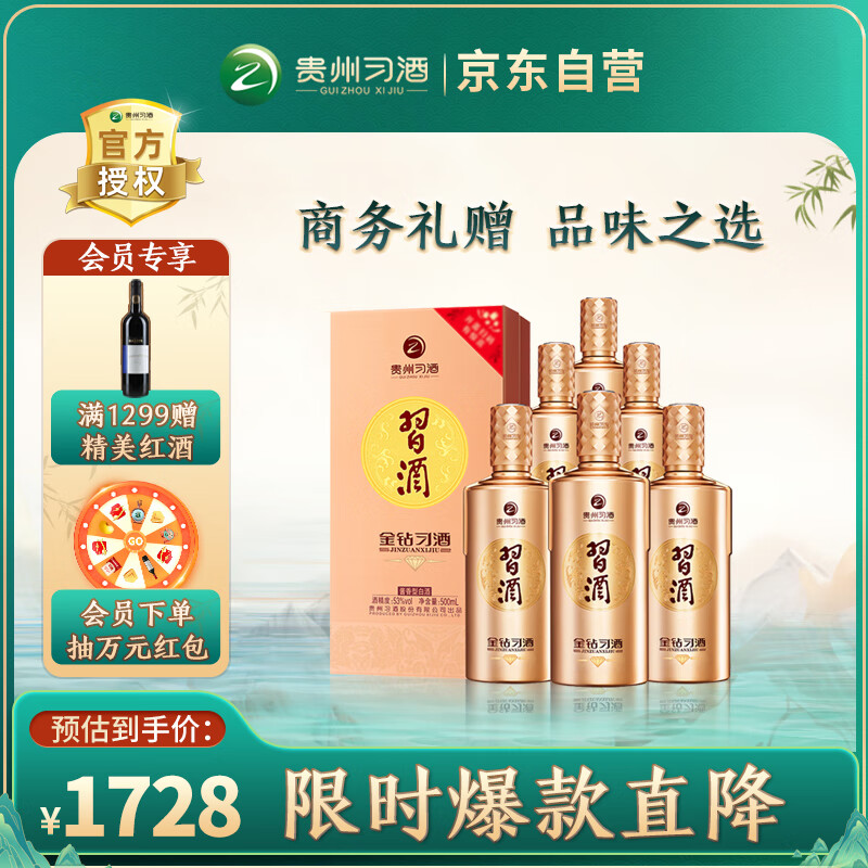 习酒金钻习酒 酱香型白酒53度 500ml*6瓶整箱装 贵州 新老包装随机发价格:1728.00元!