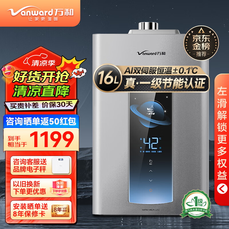 万和(Vanward)燃气热水器天然气家用智控水伺服恒温燃热【一级节能认证】省气微焰燃烧防冻小体积 16L 【JSQ30-ME5T16】价格:1899.00元!