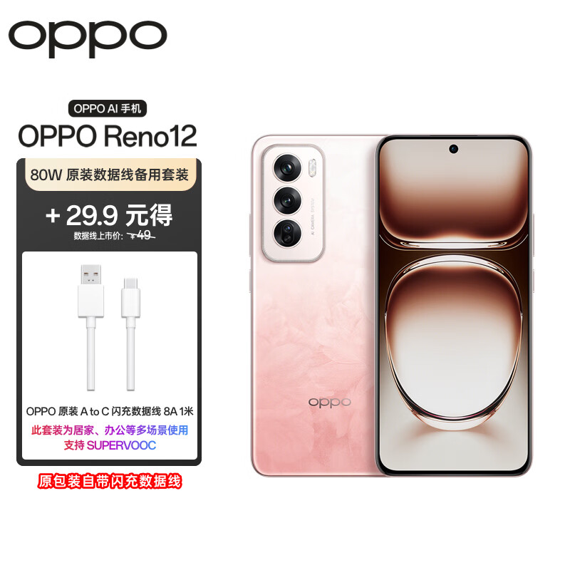 OPPO Reno12 16GB+256GB 柔和桃 超美小直屏 天玑8250星速版旗舰芯拍照手机【80W原装数据线备用套装】价格:3028.90元!