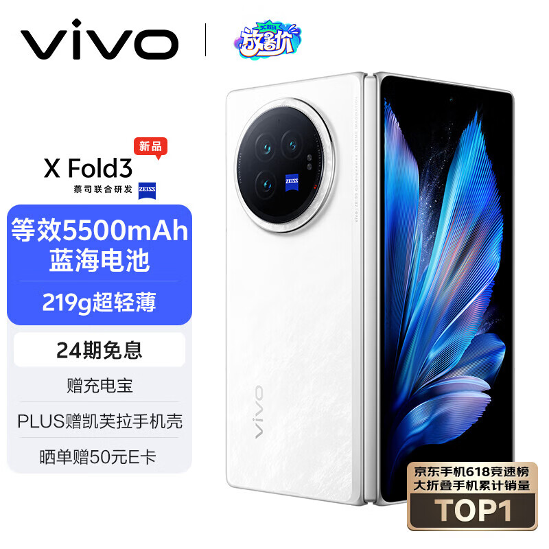 vivo X Fold3 16GB+256GB 轻羽白 219g超轻薄 5500mAh蓝海电池 超可靠铠羽架构 折叠屏 手机价格:7499.00元!