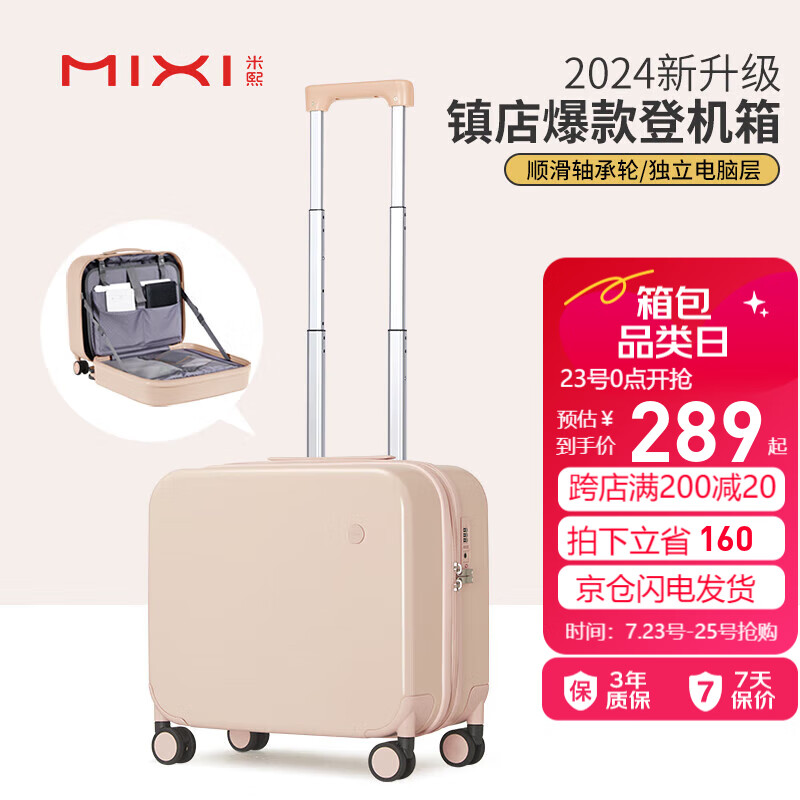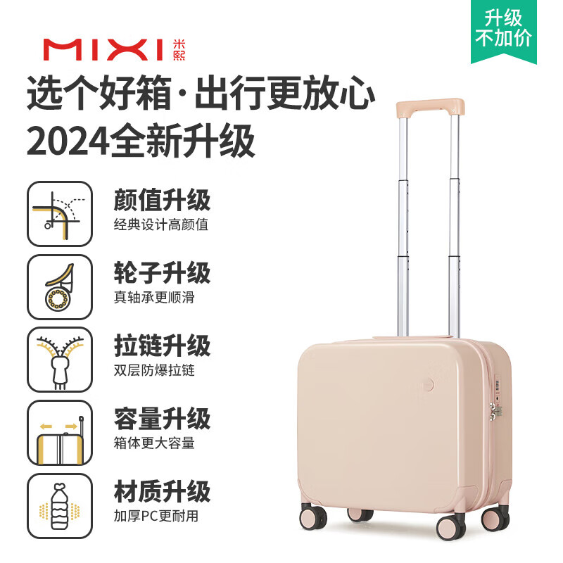米熙高颜值登机箱小行李箱女拉杆箱子旅行箱密码箱18英寸淡山茱萸粉36价格:449.00元!