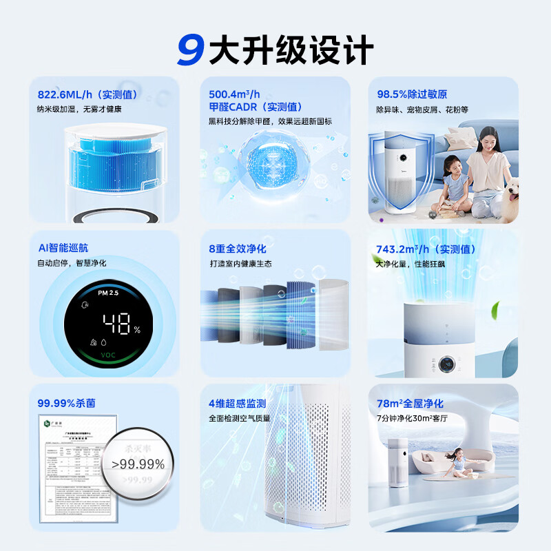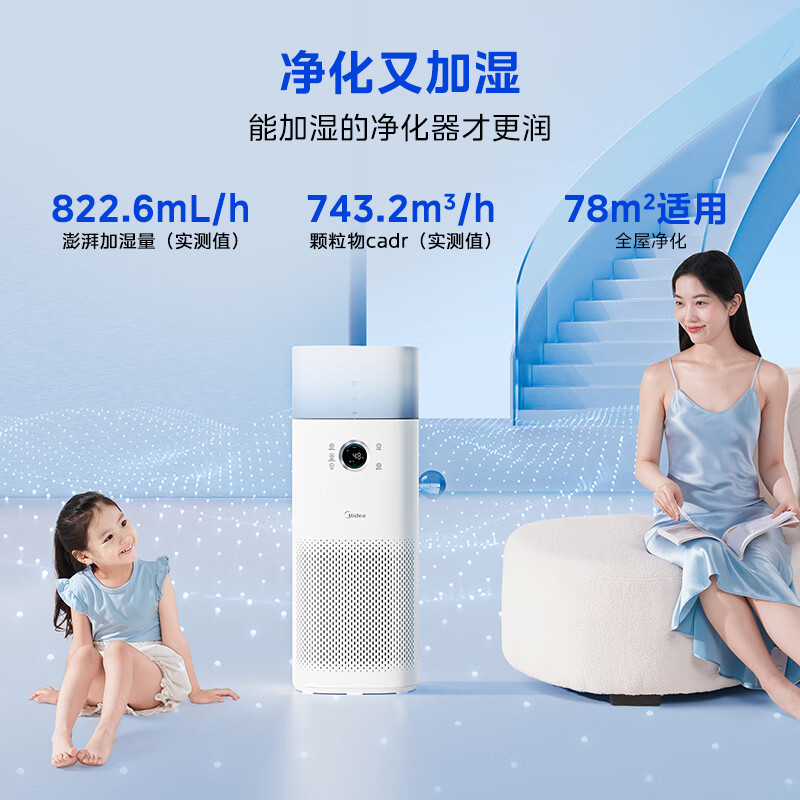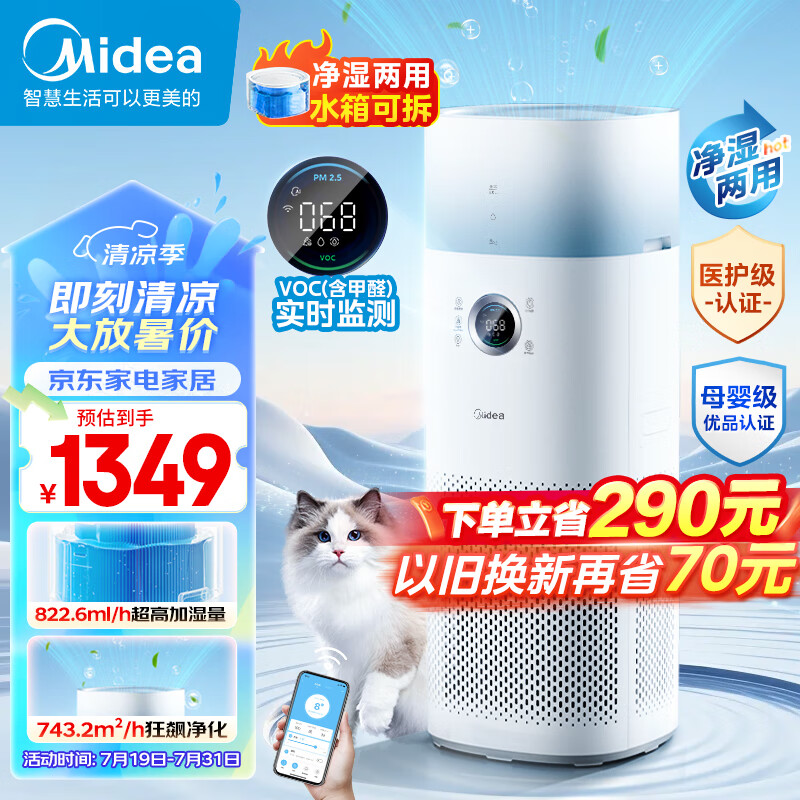 美的(Midea)医用母婴空气净化器加湿器一体家用除甲醛异味吸烟宠物猫毛净化器过敏源滤芯新风机KJ600G-RX600S价格:1639.00元!
