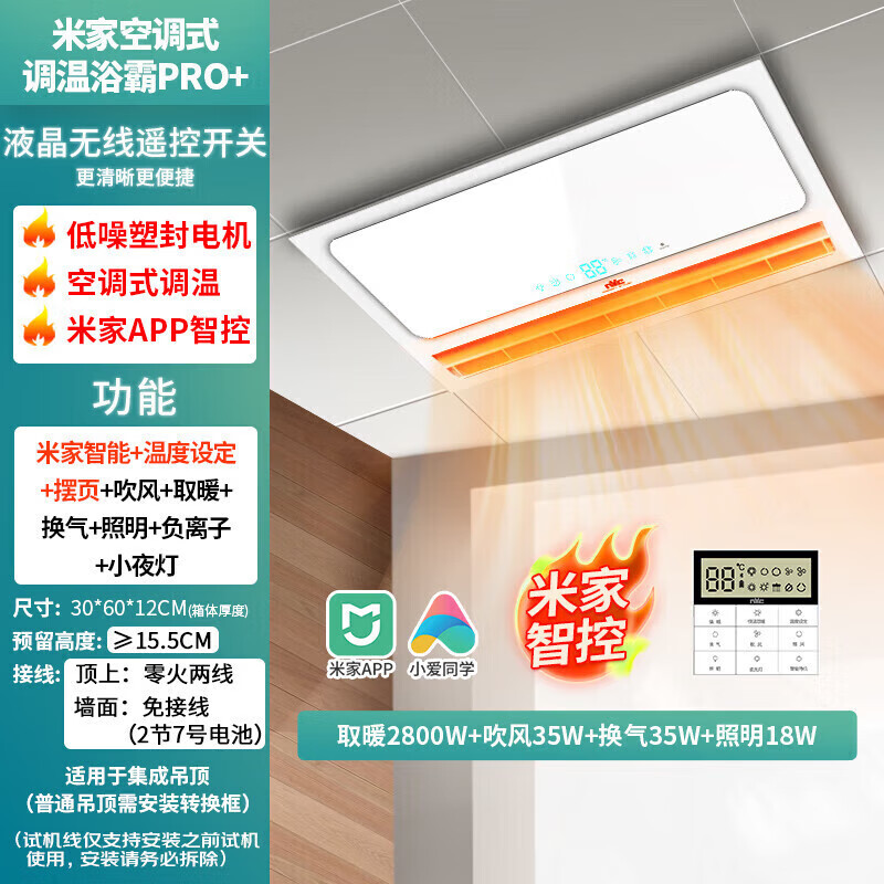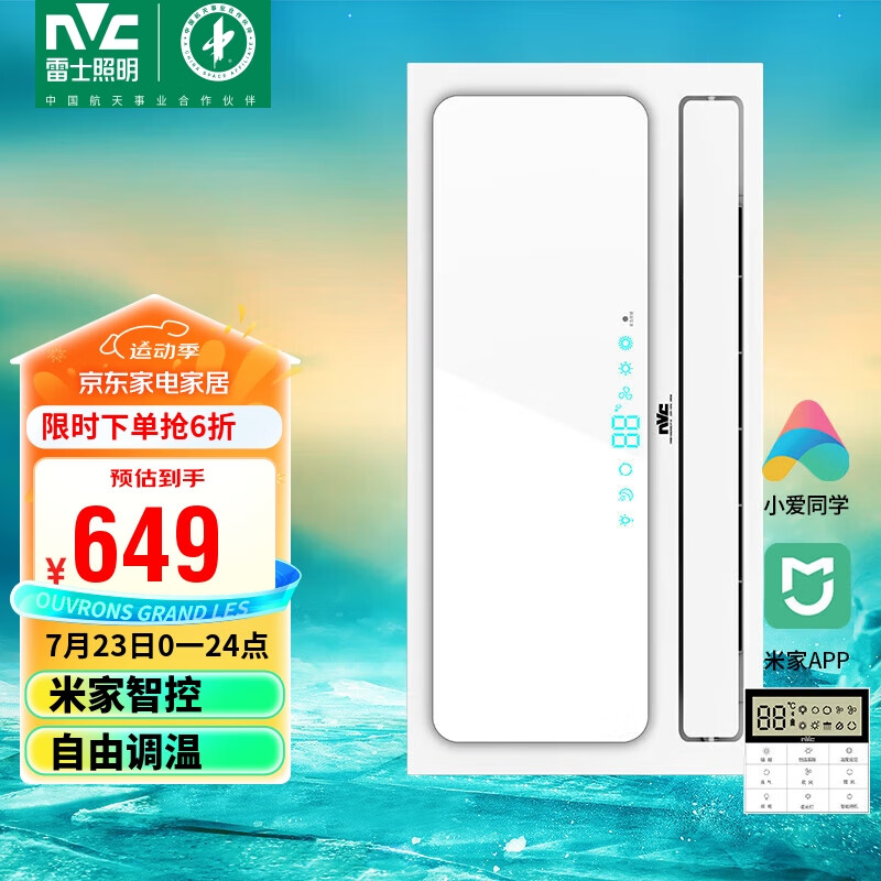 雷士(NVC)米家智能摆风调温风暖浴霸排气照明一体浴室暖风机卫生间集吊Y296价格:1165.00元!