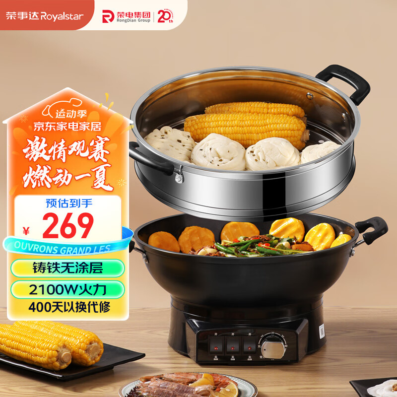 荣事达 电蒸锅电炒锅多功能电热锅山东锅多用电火锅电煮锅单层大容量电锅DRG-T34X价格:269.00元!