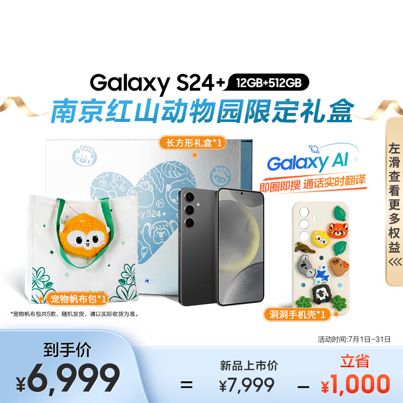 三星(SAMSUNG)Galaxy S24+ AI手机 第三代骁龙8 游戏手机 南京红山动物园限定礼盒 12GB+512GB 水墨黑 拍照手机价格:6999.00元!