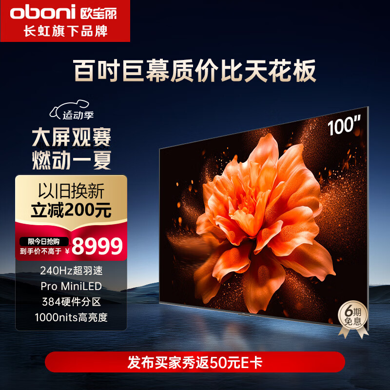 长虹电视欧宝丽100Z60 100英寸384物理分区MiniLED 4+128GB 98英寸+ 会议平板 平板液晶电视机价格:8999.00元!