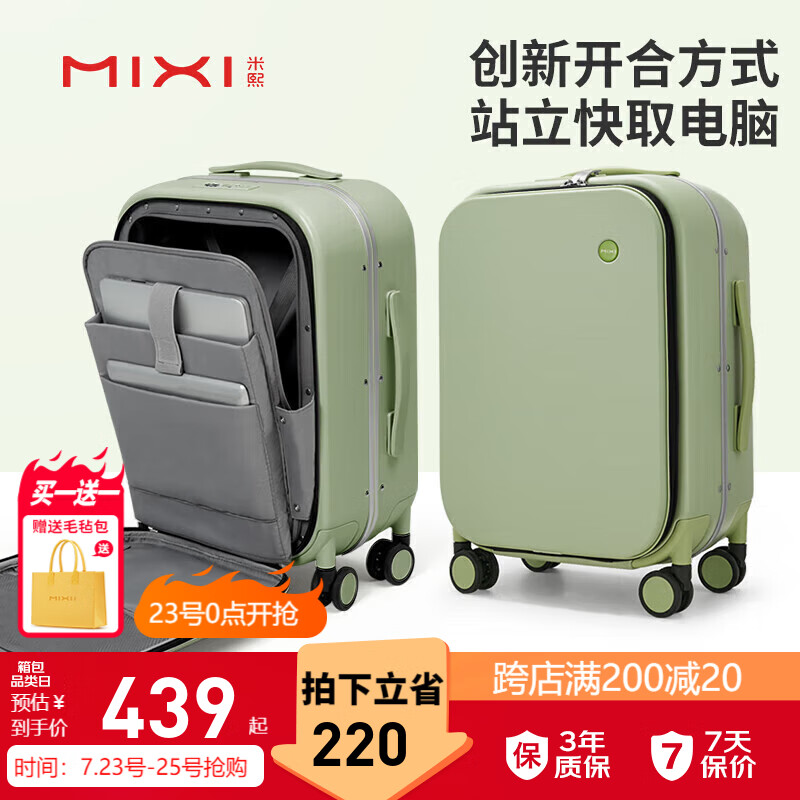 米熙前开盖拉杆箱子行李箱大容量密码铝框箱女旅行箱20英寸牛油果绿60价格:659.00元!