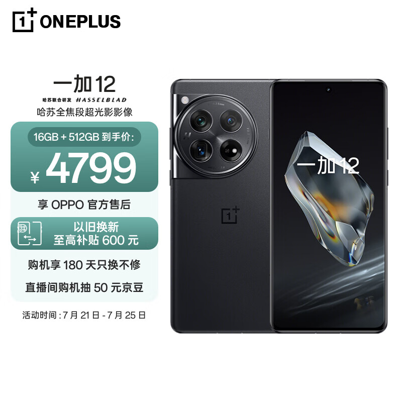 一加 12 16GB+512GB 岩黑 哈苏全焦段超光影影像 第三代骁龙8旗舰芯片 OPPO AI 5G无线充游戏拍照手机价格:4799.00元!