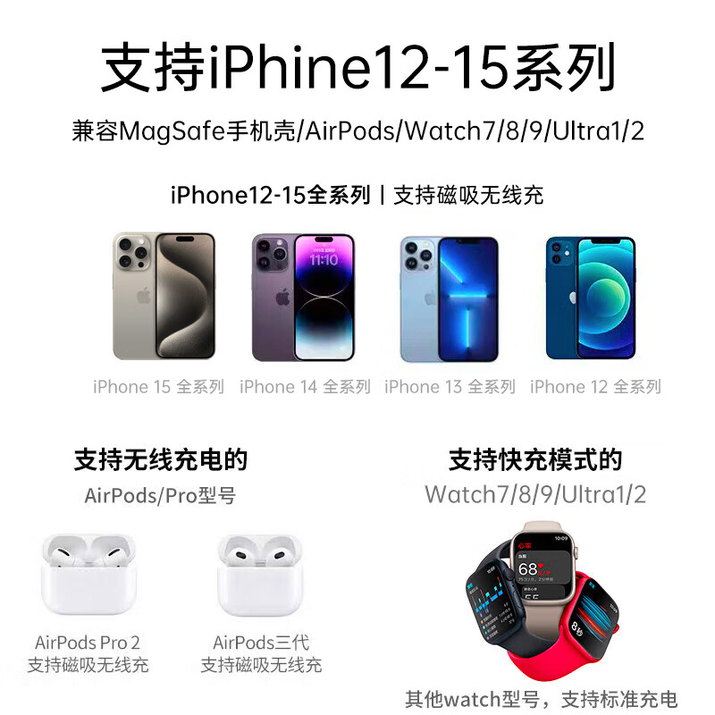 5、对于苹果全家桶用户非常方便,手表也支持快充了,