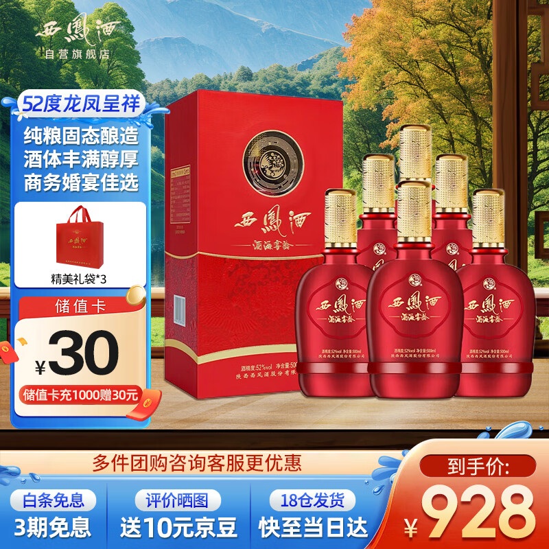 西凤酒 52度龙凤呈祥纯粮凤香型白酒海窖龄婚庆喜宴请送礼盒装500mL*6价格:928.00元!