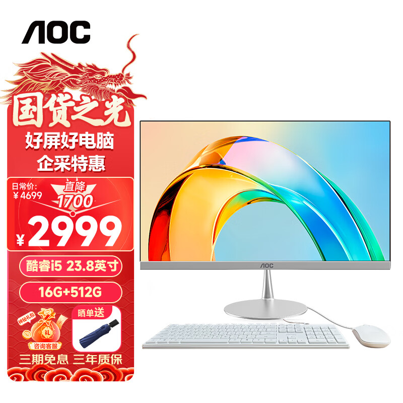 AOC美人鱼734Pro 23.8英寸高清办公网课学习台式一体机电脑(12代i5-12450H 16G 512G 双频WiFi )白价格:4699.00元!