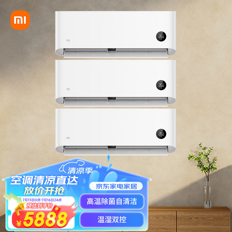 小米空调套装 巨省电3套挂机1.5匹+1.5匹+1.5匹 新一级能效 变频冷暖价格:5888.00元!