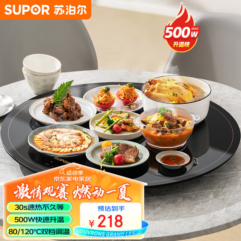 苏泊尔(SUPOR)暖菜板 饭菜保温板热菜板 加热桌垫菜板 烘干发酵解冻多功能加热板(圆形60CM)可旋转 BZ60A806J价格:218.00元!