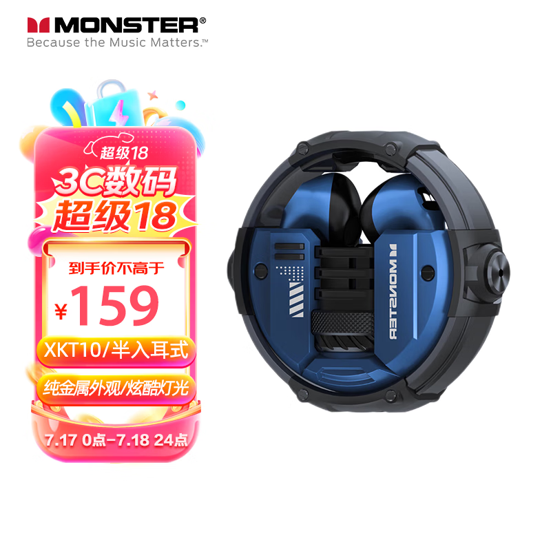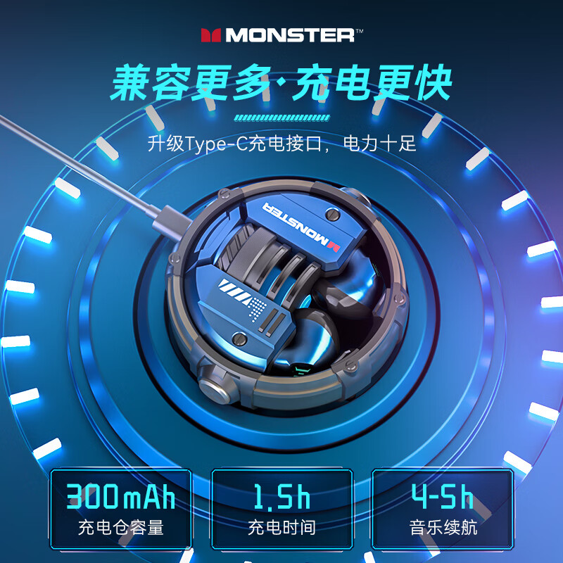 魔声(MONSTER)XKT10蓝牙耳机电竞游戏低延迟真无线运动降噪半入耳立体声男士超长续航音乐耳机 蓝色价格:187.00元!