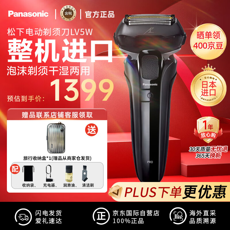 松下LV5W-K黑 日本进口亲肤清洁 电动剃须刀 男士智能往复式刮胡刀 便携胡须刀 情人节男士父亲节礼物价格:1549.00元!