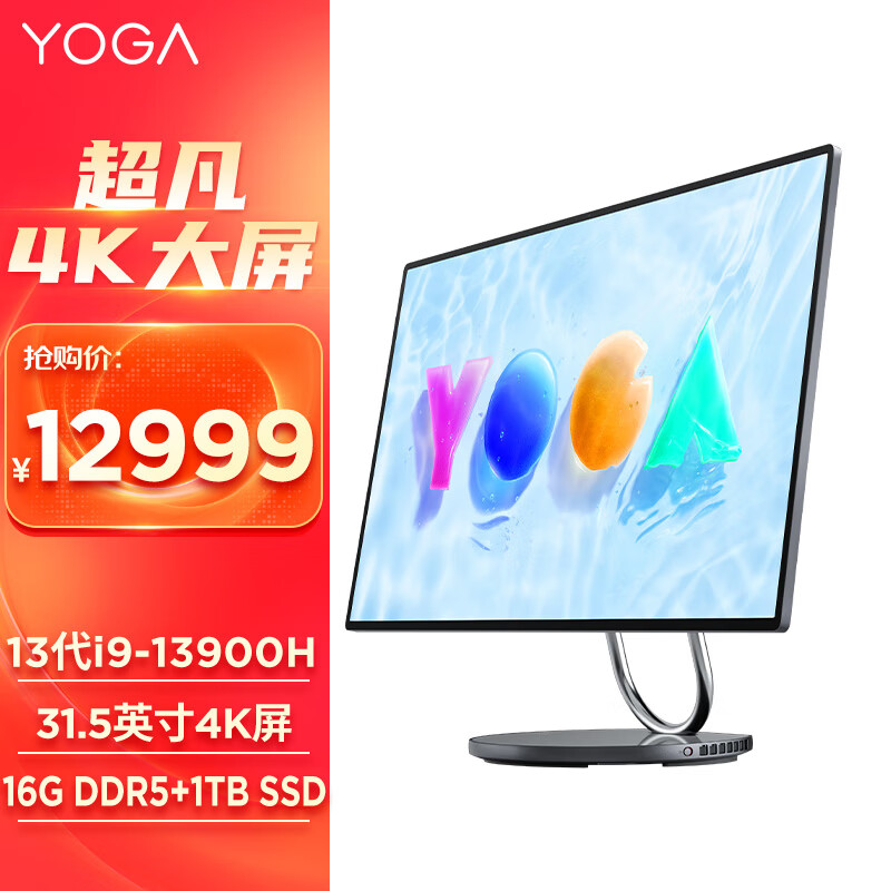 联想(Lenovo)Yoga Air 32 31.5英寸4K屏一体台式机电脑(13代i9-13900H 16G 1TB SSD 无线键鼠)价格:12999.00元!