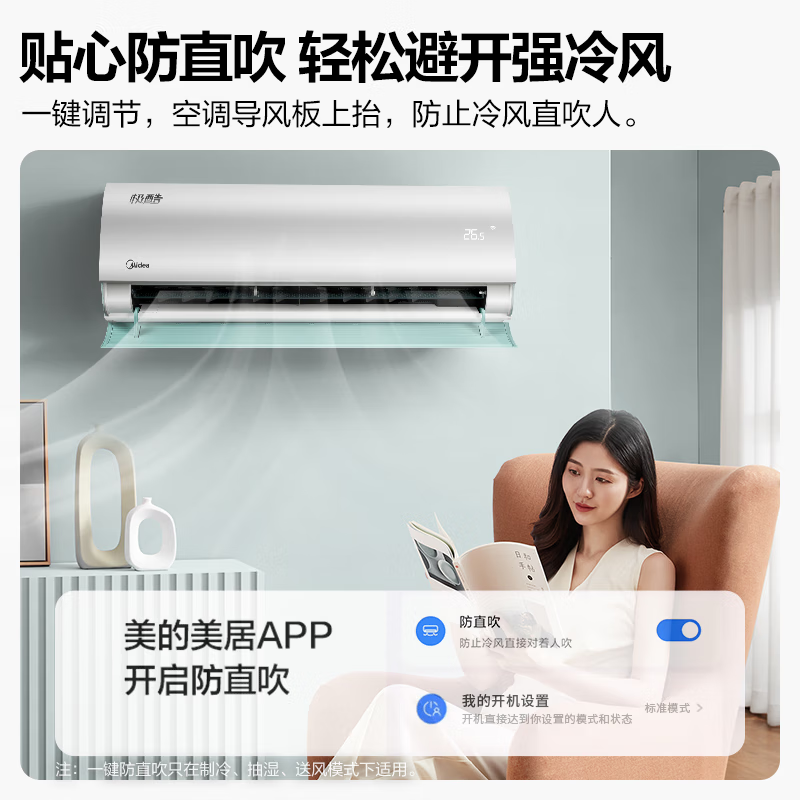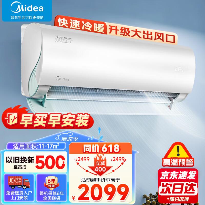 美的大1匹空调 极酷二代 新一级能效省电 变频冷暖 防直吹 智清洁 壁挂式挂机 KFR-26GW/N8VHA1Ⅱ价格:2099.00元!