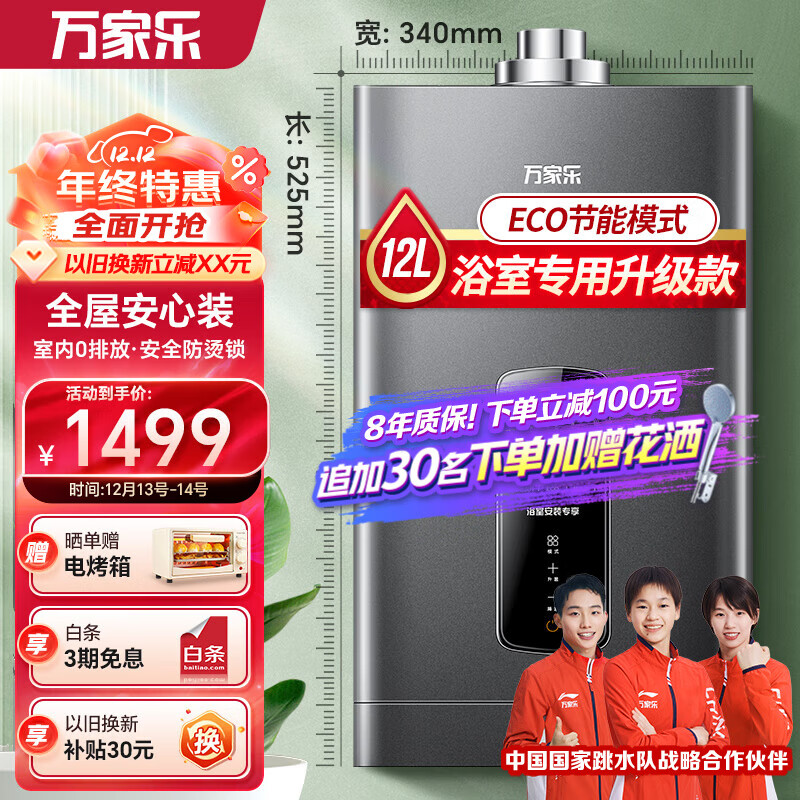 万家乐JSG24-12RH2平衡式燃气热水器即热智能恒温可装浴室 ECO节能 WIFI智控 JSG24-12RH2 液化气价格:1599.00元!