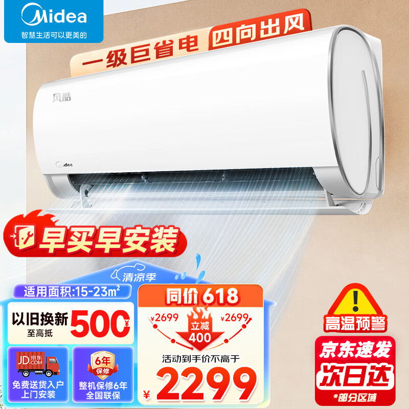 美的空调风酷大1.5匹省电新一级变频冷暖大风口自清洁家用壁挂式卧室挂机KFR-35GW/N8XHC1Ⅱ价格:2299.00元!