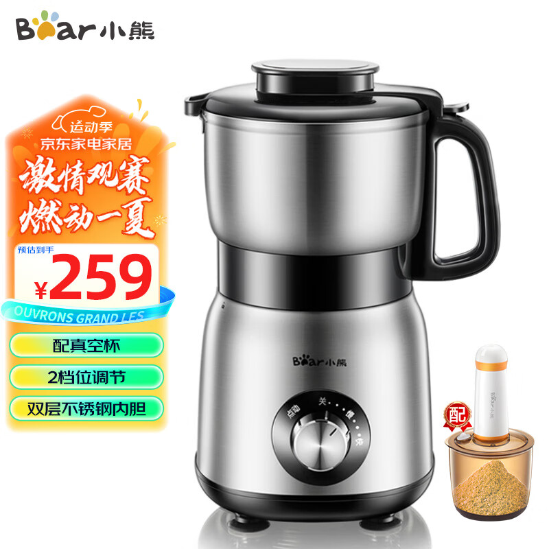 小熊(Bear)研磨机 家用磨粉机 打粉机 中药粉碎机 料理机 干粉机 不锈钢打粉超细研磨机FSJ-A05N6价格:259.00元!