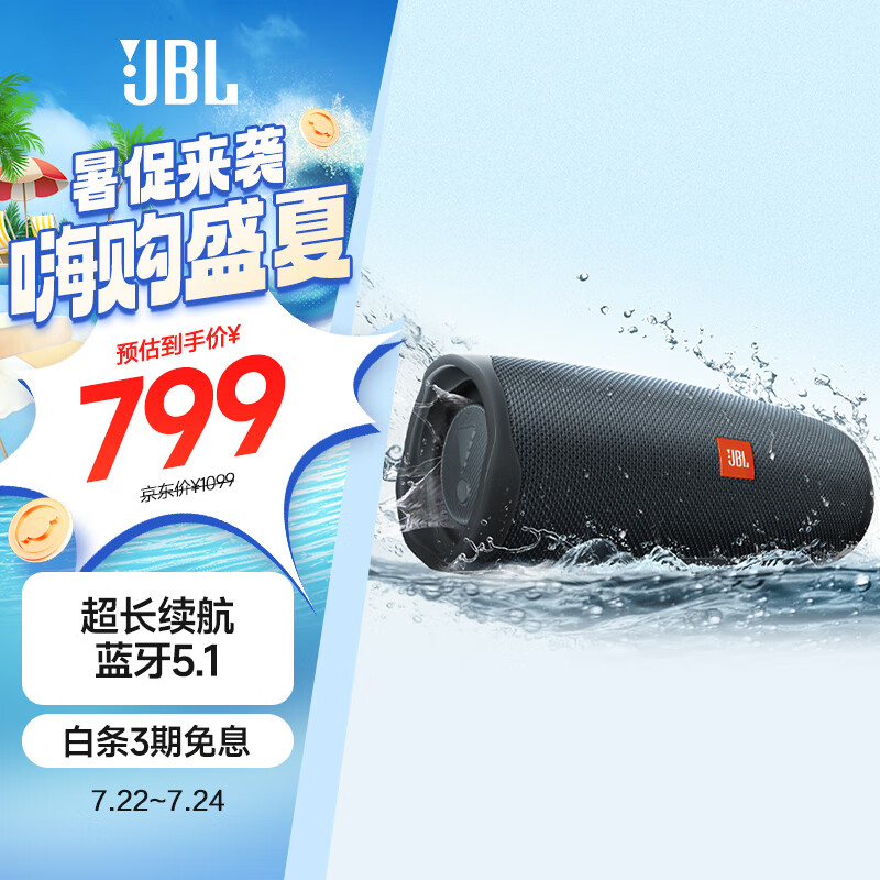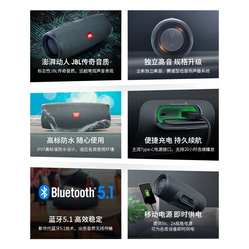 JBLCHARGE ES2 音乐冲击波青春版二代 便携蓝牙音箱 低音炮 桌面音响 防水设计 超长续航 蓝牙5.1价格:799.00元!