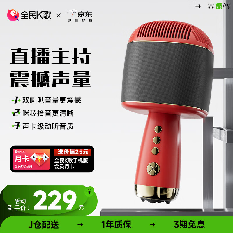K歌 无线麦克风蓝牙音响手机K歌宝主播唱歌直播儿童话筒 智能降噪派对娱乐家庭KTV自用送礼M9胭脂红价格:229.00元!
