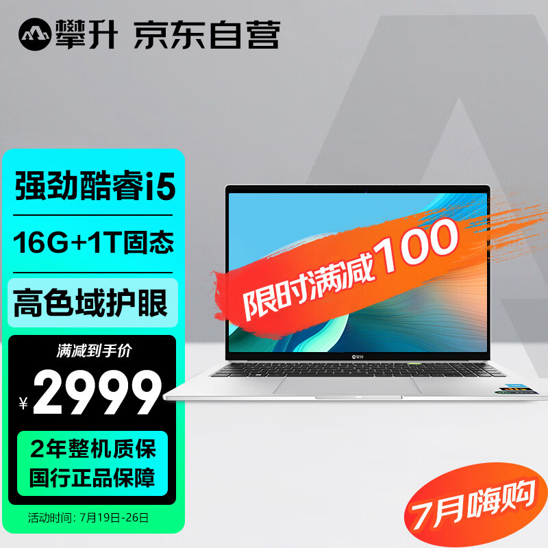 攀升笔记本电脑高性能轻薄本16英寸暴风龙P3 学生电脑笔记本游戏本 (英特尔酷睿i5 16G 1T护眼屏)价格:3099.00元!