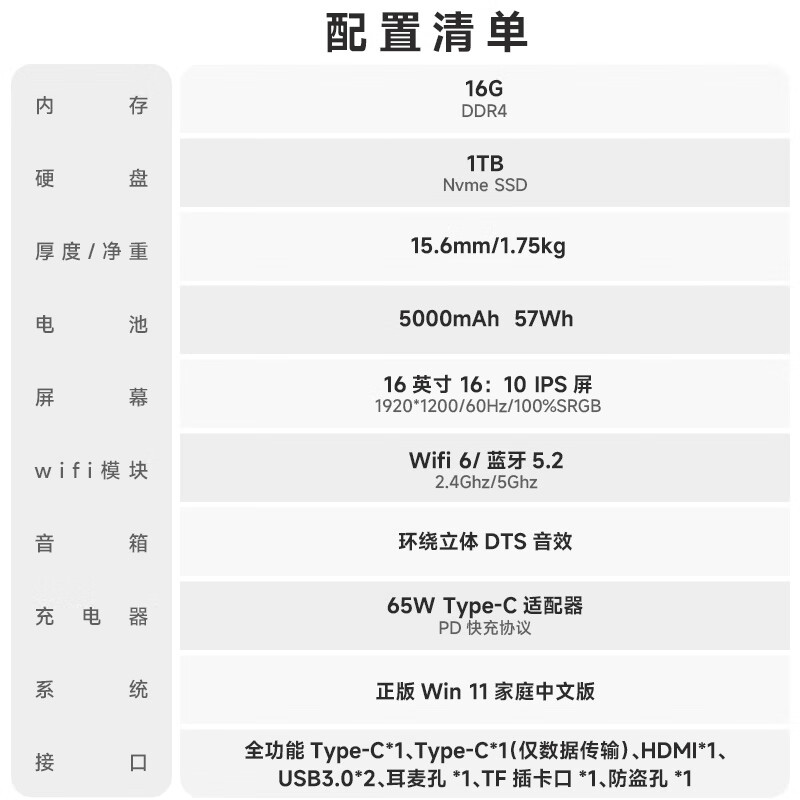 特性:大内存(16GB及以上),长续航,Wi-Fi6