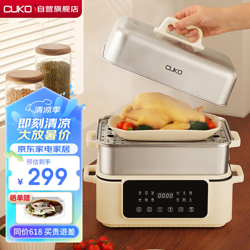 CUKO英 国库可不锈钢电蒸锅多功能锅大容量火锅双层蒸鱼多用途锅GY-515价格:299.00元!